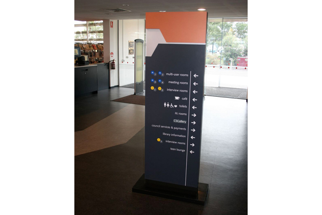 Perry Watson Design designed the complete internal signage package for the Caroline Springs Library and Sports Complex. Work included consultation with the Prior + Cheney Architects, designing map location plan, design of sign graphics, signage artwork and documentation.