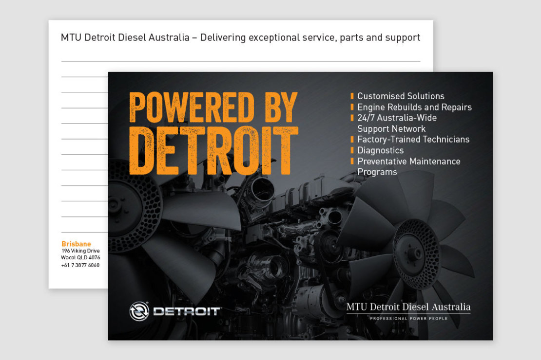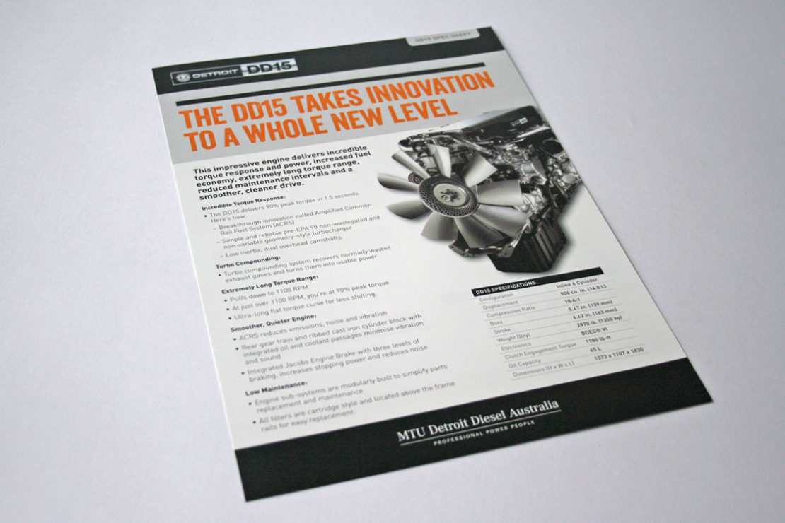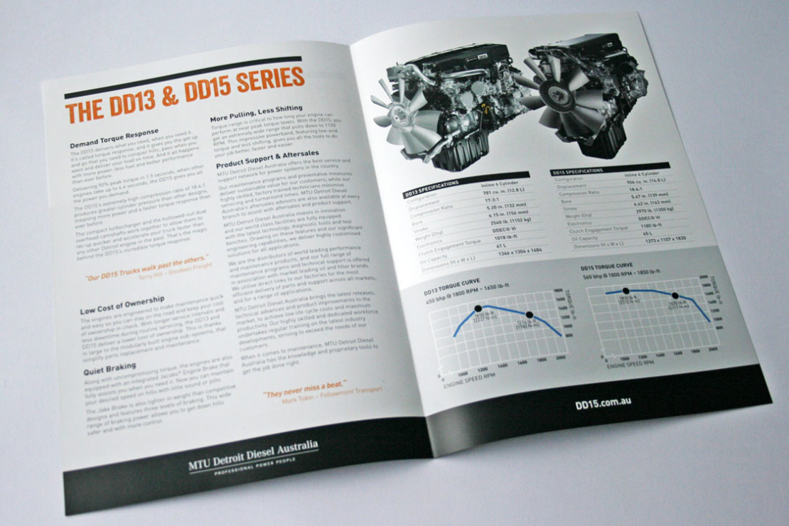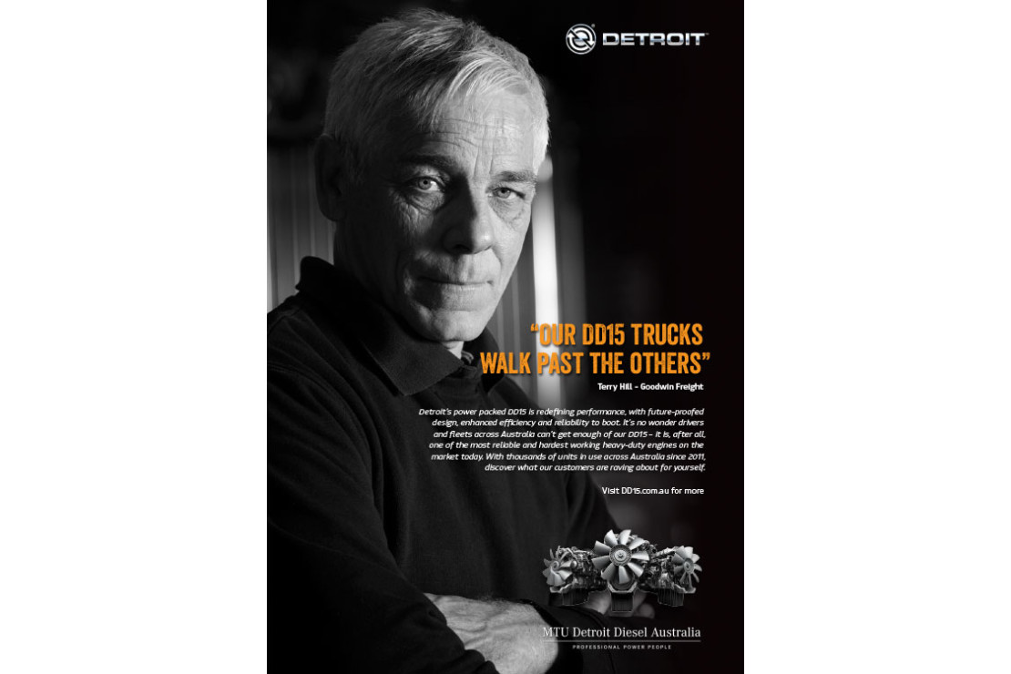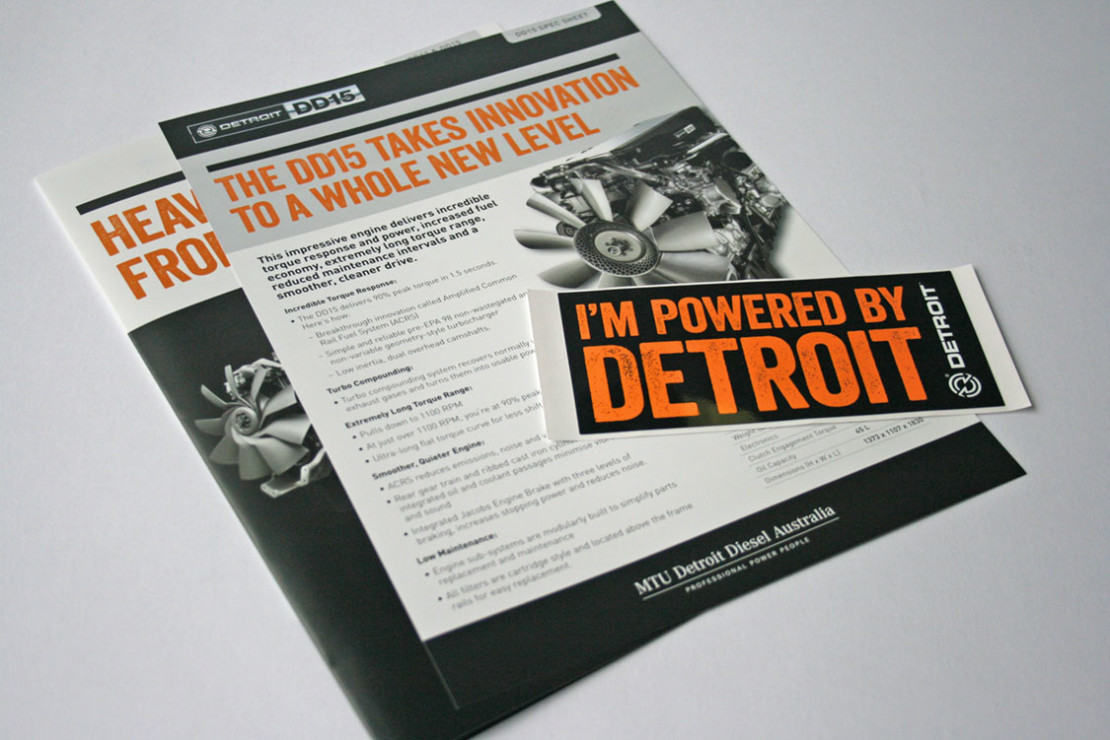 Concepts and design for Detroit DD15 Awareness Campaign including: Press Advertisements, Online adverts, Posters, Website and Stickers. The campaign was built around owner testimonials that underlined the reliability, dependability and loyalty to the Detroit brand. The use of dramatic black and white photography combined with bright orange quotes provided a simple but powerful message that was echoed across the campaign.
